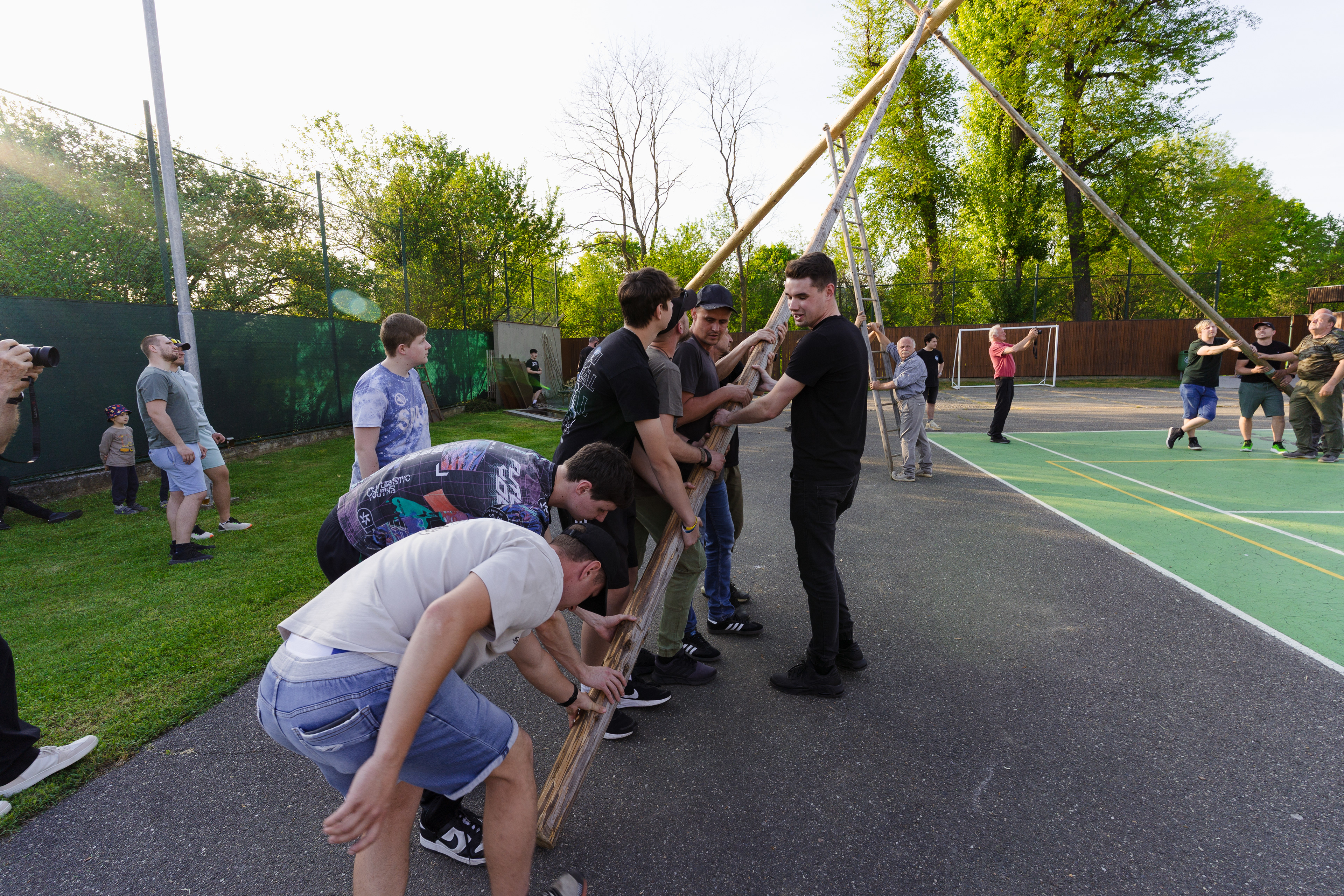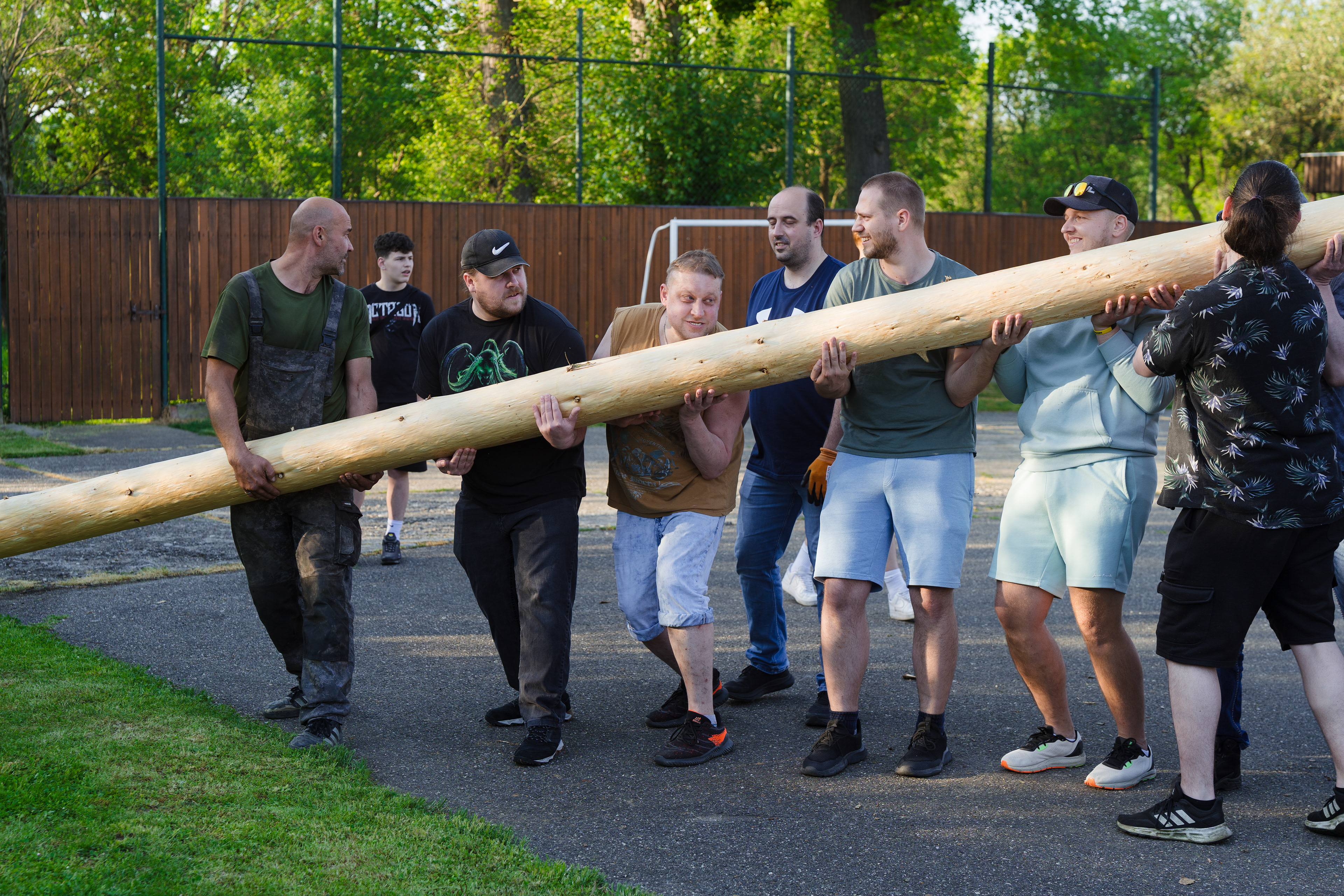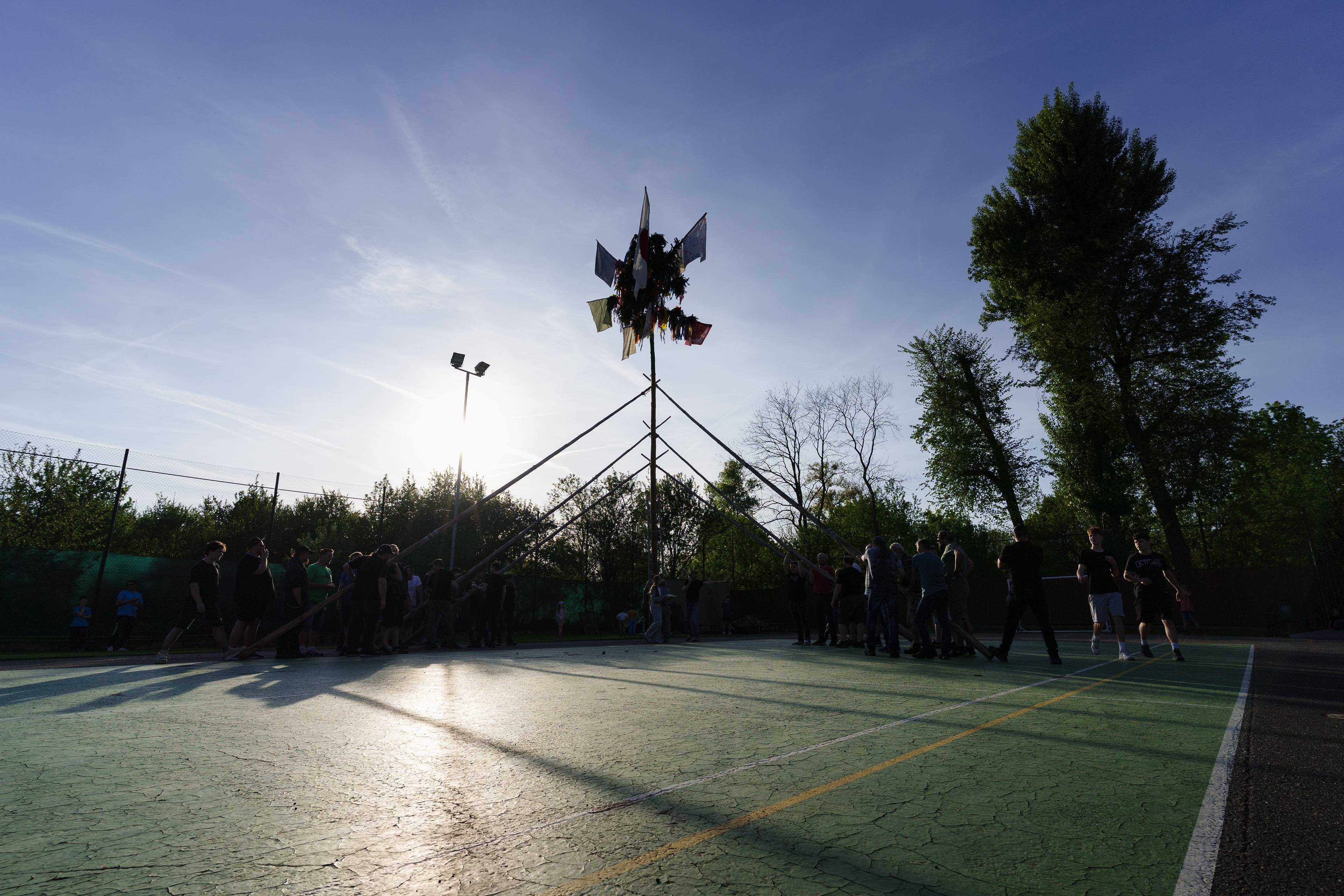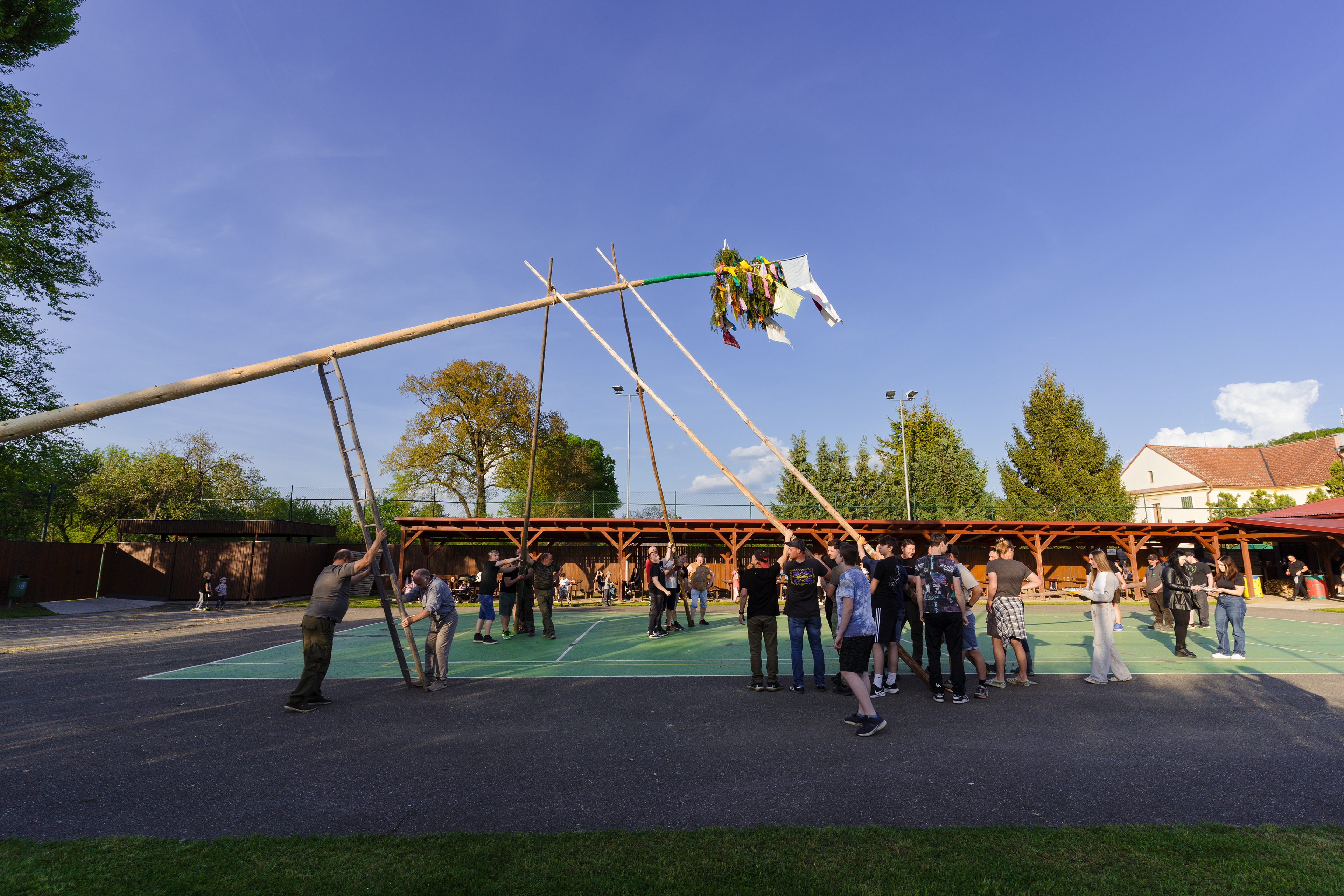 Ruční stavění májky Veletiny 2025